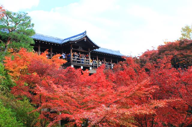 古来より京都屈指の紅葉の名所として知られ、境内の通天橋からの眺めは絶景。毎年秋には多くの参拝客や観光客で溢れ返ります。